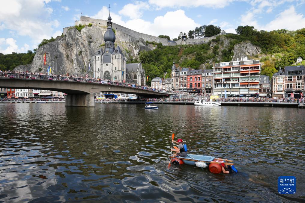 8月15日,在比利時南部小城迪南的默茲河上,人們參加“浴缸劃船節”。