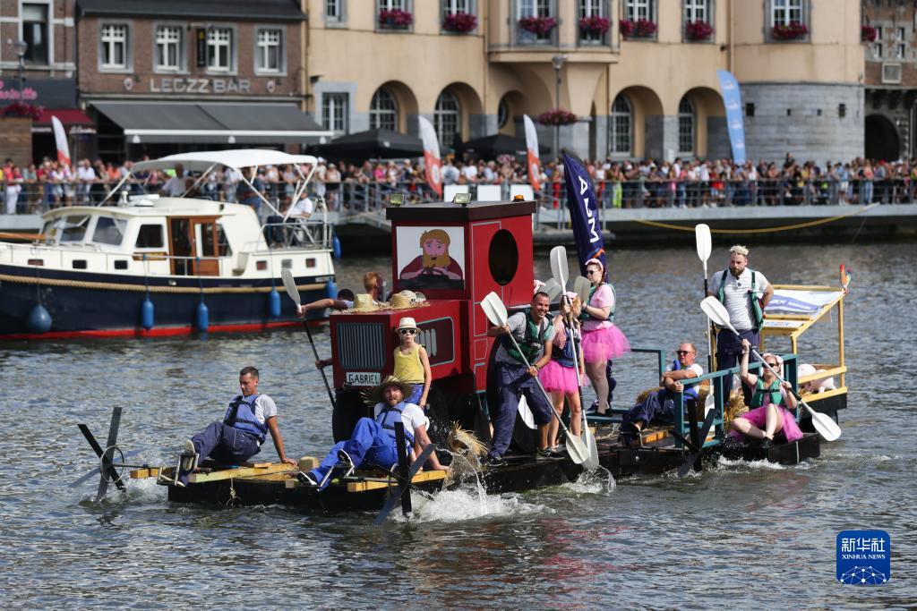 當日,“浴缸劃船節”在比利時迪南舉行。該活動始于1982年,已成為比利時熱鬧的夏季節慶活動之一。今年的“浴缸劃船節”主題為“默茲河上的農場”,參加者圍繞浴缸打造稀奇古怪的船只,比拼設計創意及現場表演。