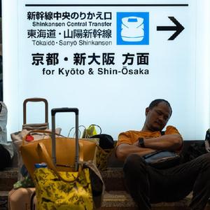 當日,受今年第7號臺風“蘭恩”影響,日本東海道新干線列車全線停運,導致大量旅客滯留。
