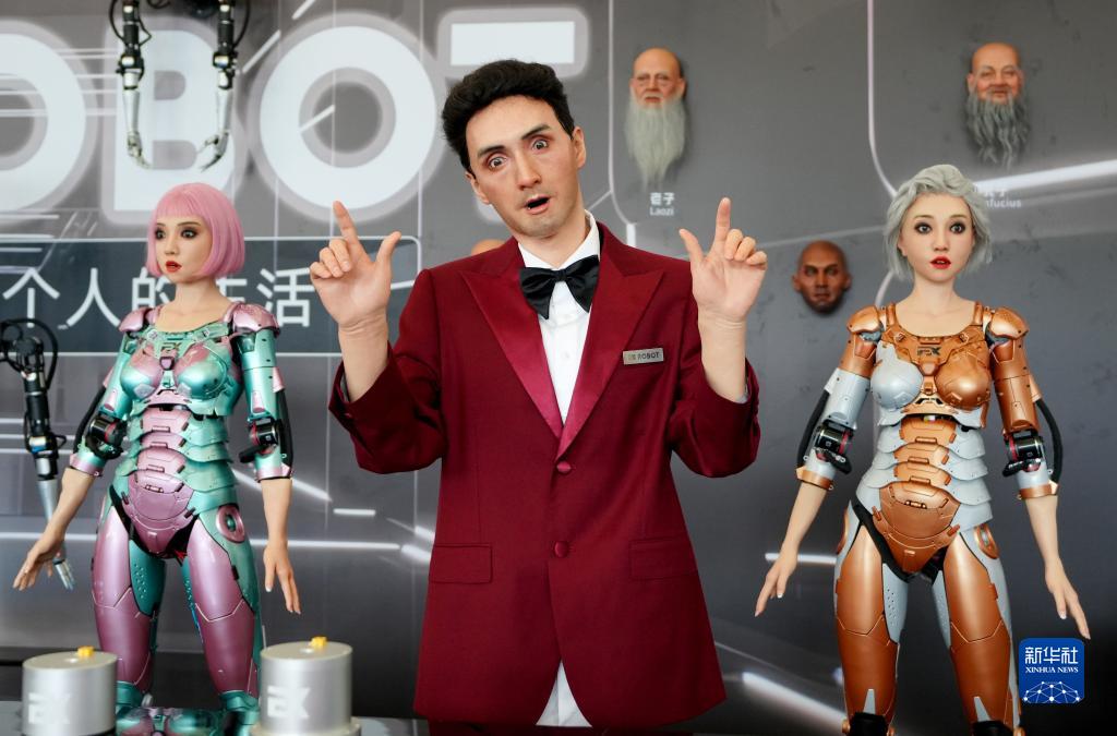 8月16日,仿生人形機器人在進行表演。