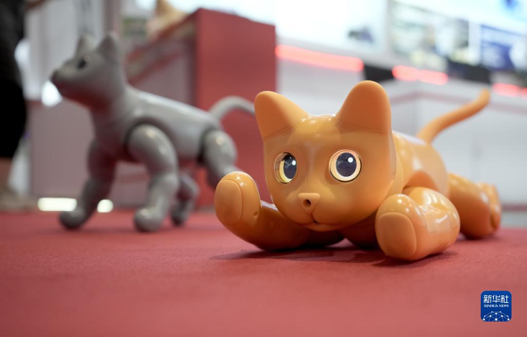這是8月16日在2023世界機器人大會上拍攝的仿生陪伴機器貓。