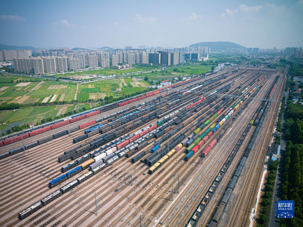 這是8月16日拍攝的位于杭州北郊的鐵路喬司編組站(無人機照片)。