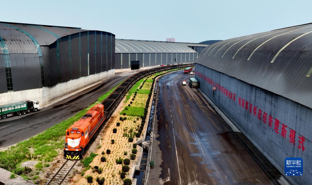 8月16日,在中聯鐵運(井陘)儲備基地,發往保定電廠的煤炭列車駛出儲備基地。