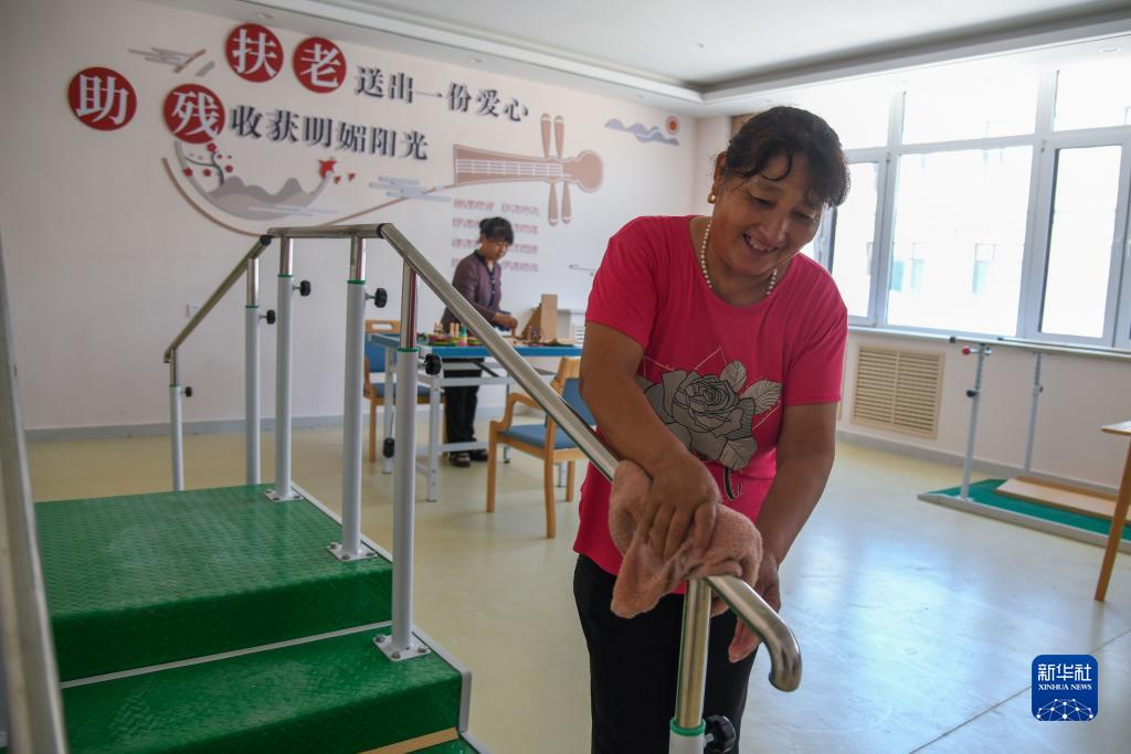 8月15日,物業員工在即將投入使用的馬山鎮綜合養老服務中心內打掃衛生。