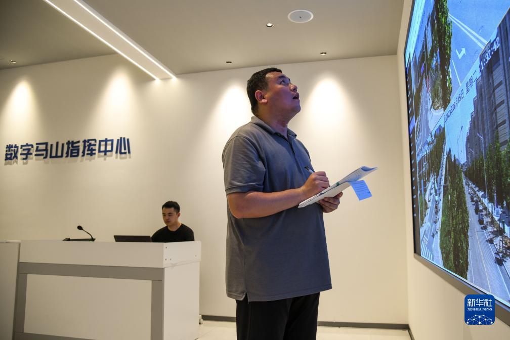 8月15日,馬山鎮工作人員通過數字技術查看社區情況。