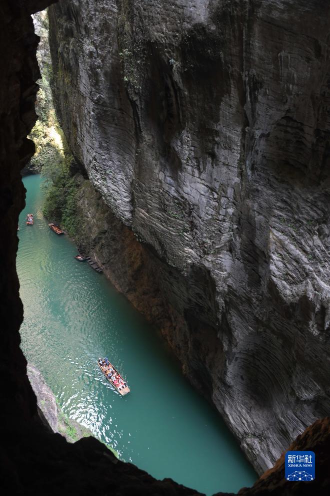 湖北省恩施土家族苗族自治州鶴峰縣森林覆蓋率高,空氣清新,氣候宜人。位于該縣容美鎮的屏山峽谷,全長約18公里,峰巒與河谷高差達千米,最窄處僅五尺,形成罕見的峽谷和地縫特色風光,碧水、輕舟與絕壁、森林相映成趣,每年吸引眾多海內外游客前來觀光。