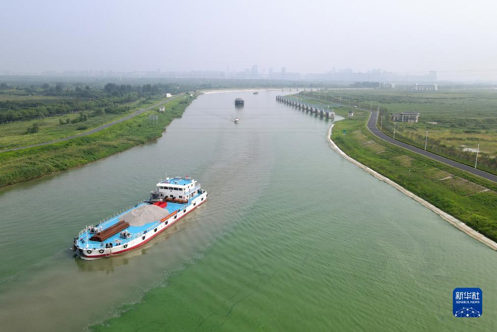 8月16日,船只在引江濟淮工程航道江淮溝通段航行(無人機照片)。