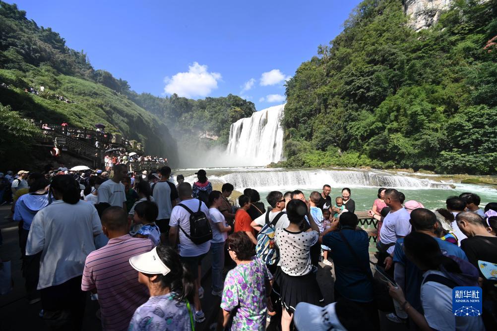 初秋時節,位于貴州省安順市的黃果樹瀑布景區進入一年中的最佳觀賞期。大瀑布奔騰而下、氣勢磅礴,前來觀賞游玩的游客絡繹不絕。