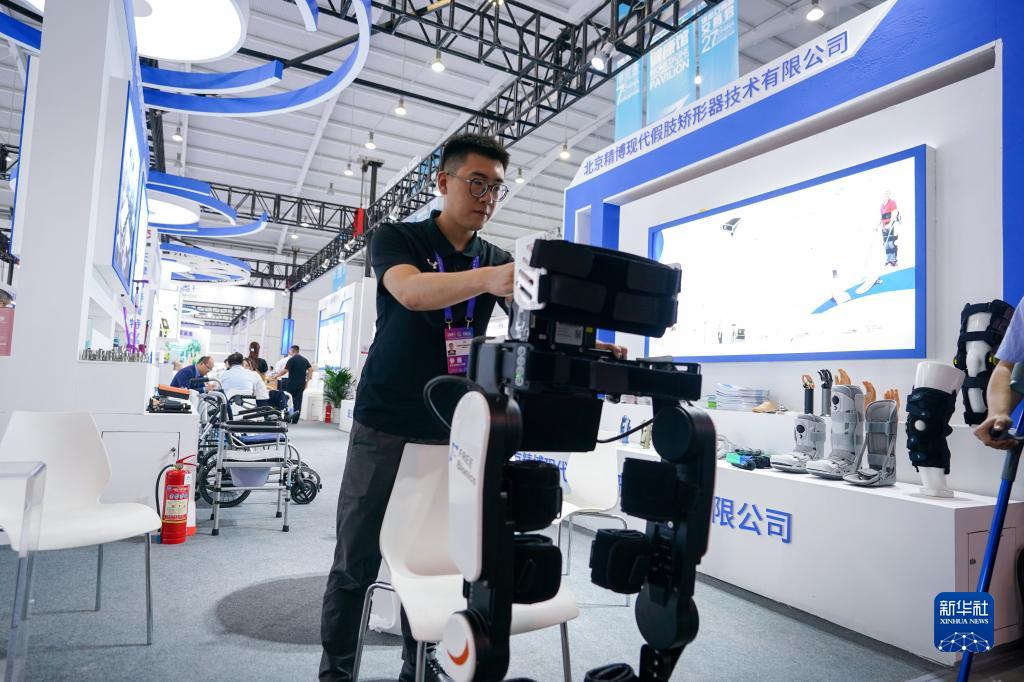 8月16日,參展商在第七屆中國—南亞博覽會上展示下肢外骨骼助行輔具?! ⌒氯A社記者 陳欣波 攝