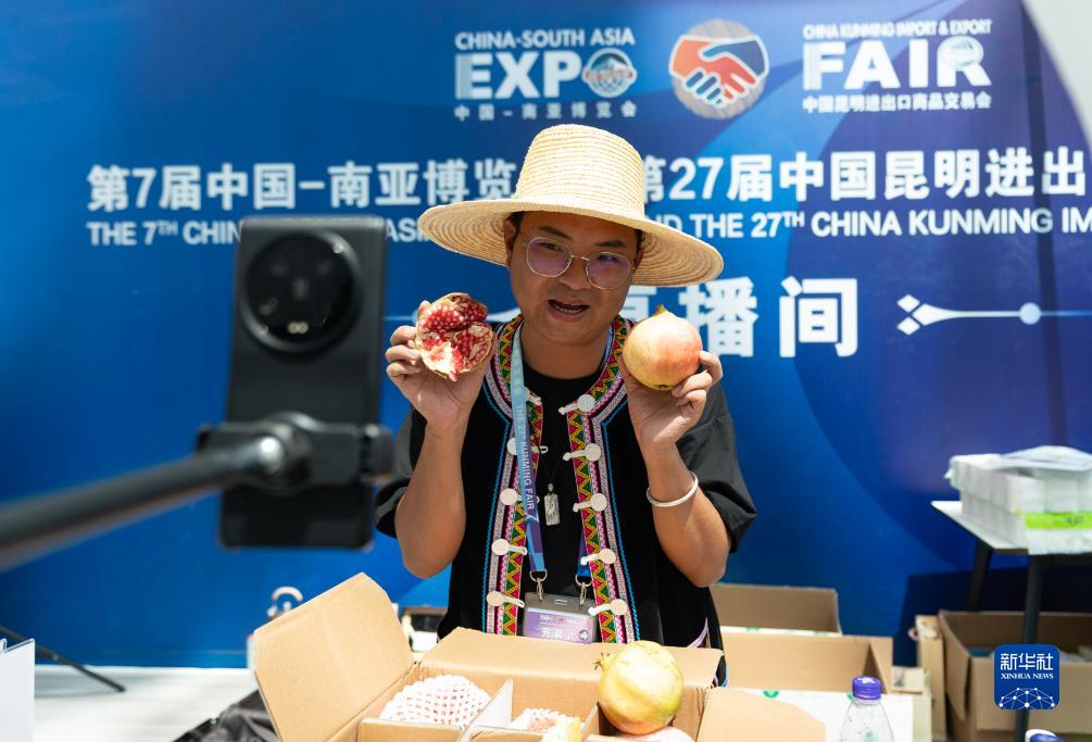8月16日,一名主播在第七屆中國—南亞博覽會上直播售賣農產品?! ⌒氯A社記者 陳欣波 攝