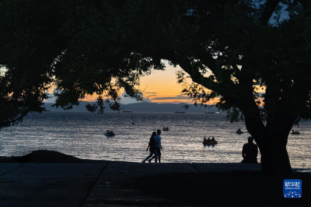 俄羅斯遠東城市符拉迪沃斯托克三面環海,旅游業較發達,每當夜幕降臨時,人們來到阿穆爾灣的海邊娛樂休閑。
