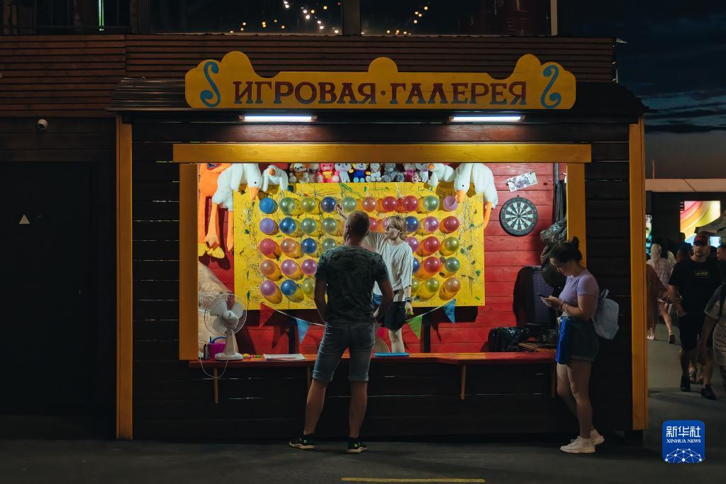 這是8月16日拍攝的位于俄羅斯遠東城市符拉迪沃斯托克阿穆爾灣的游藝小攤。