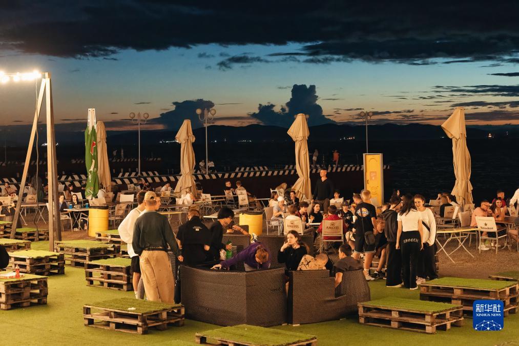 俄羅斯遠東城市符拉迪沃斯托克三面環海,旅游業較發達,每當夜幕降臨時,人們來到阿穆爾灣的海邊娛樂休閑。