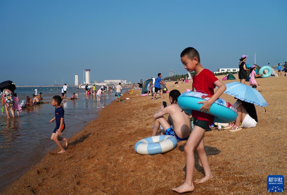 8月16日,游客在山東省萊州市三山島的海濱風景區游玩。