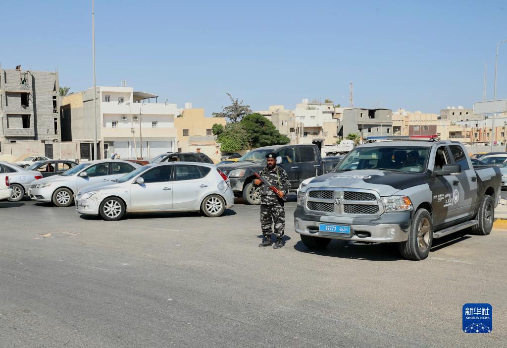 8月16日,利比亞沖突?;鸷?,利比亞內政部執法部隊在的黎波里的艾因扎拉區保障安全。