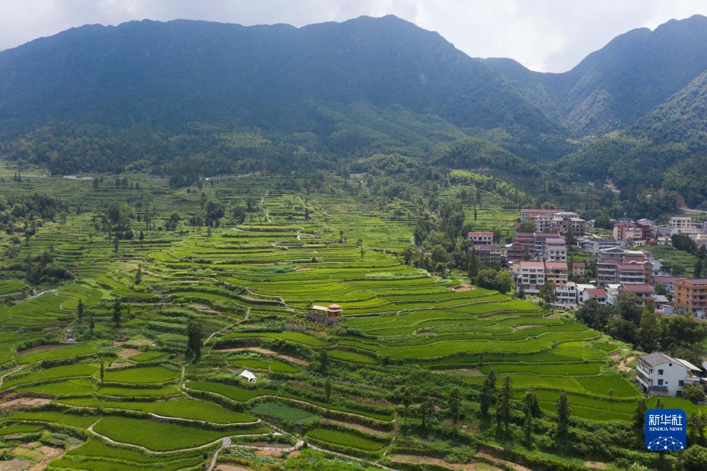 8月17日,空中俯瞰青田縣方山鄉梯田,這里也是稻魚共生系統的核心保護區(無人機照片)。