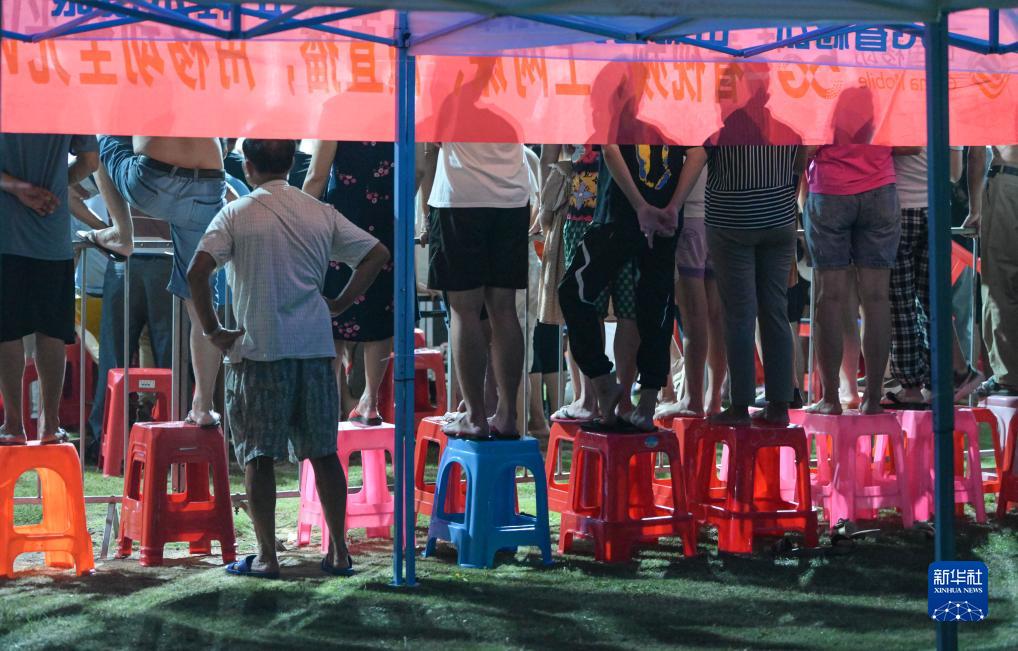 觀眾在“村排”現場觀看公坡鎮隊對陣東郊鎮隊的比賽(7月1日攝)。
