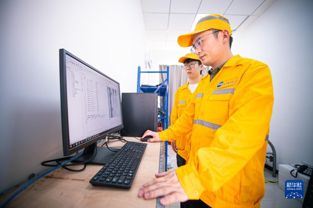 8月17日,杭州電務段工作人員在杭臺高鐵中繼3站巡檢時查看機器人實時監測的機房情況。