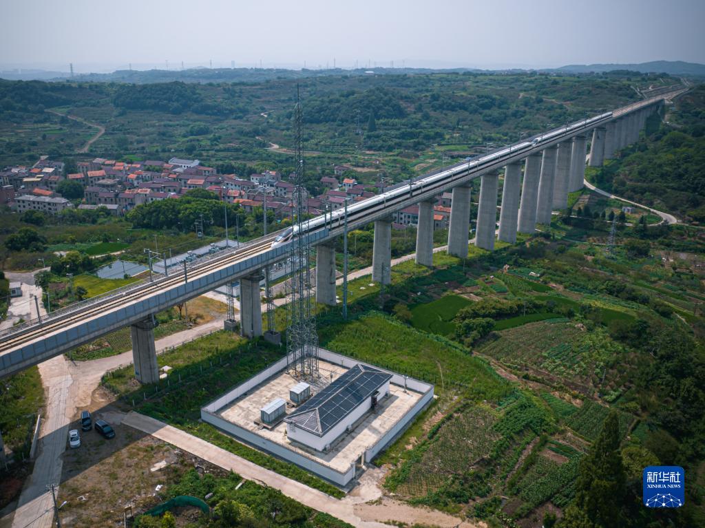 這是8月17日拍攝的位于嵊州的杭臺高鐵中繼3站(無人機照片)。