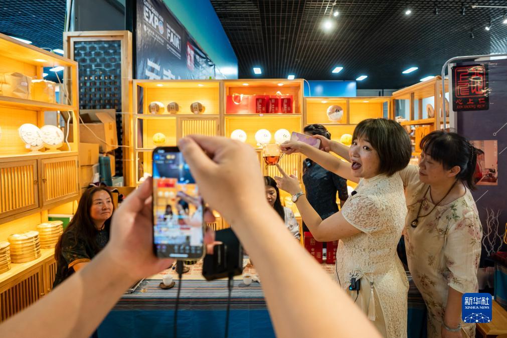 8月17日,茶企工作人員在南博會首屆南亞茶葉節上直播賣貨。