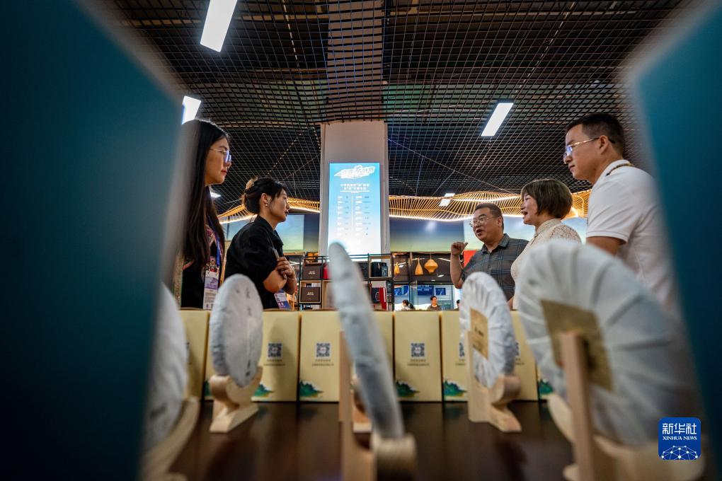8月17日,茶企工作人員在南博會首屆南亞茶葉節上交流。