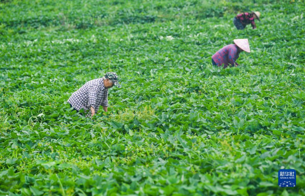8月16日,村民在重慶市石柱土家族自治縣王家鄉光華村紅薯地里勞作。