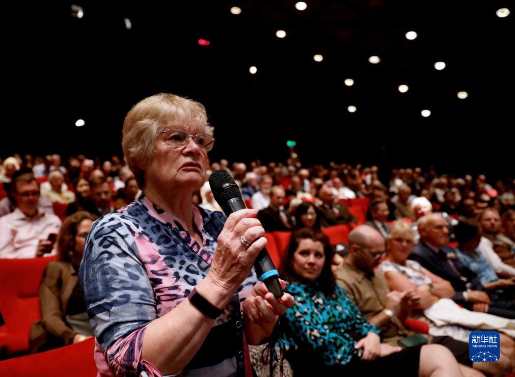 8月15日,在英國倫敦,“里斯本丸”號幸存者丹尼斯·莫利之女丹妮絲·維尼在放映活動上與主創人員交流。