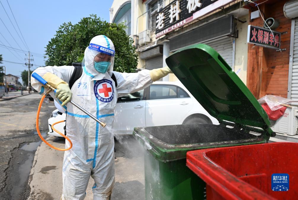 8月17日,工作人員在天津市靜海區臺頭鎮進行消殺作業。