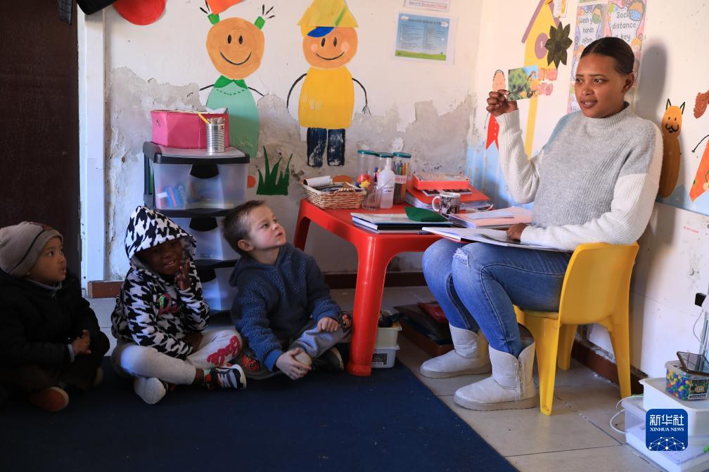 8月11日,老師在南非德阿鎮的一家兒童早教中心給孩子們上課。