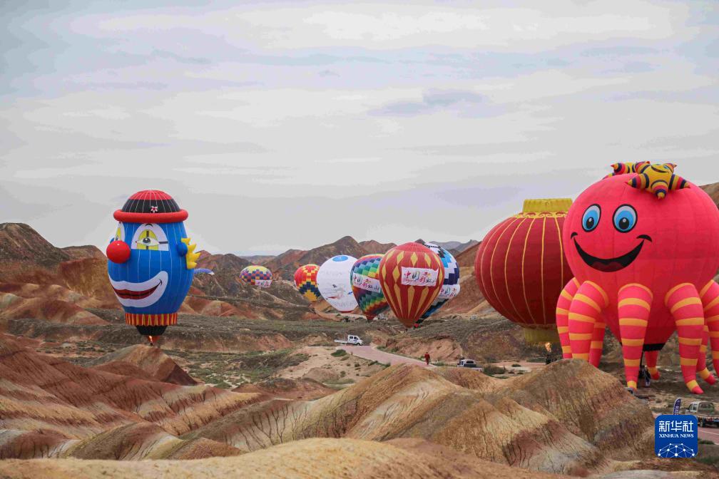 當日,甘肅張掖第三屆張掖七彩丹霞熱氣球嘉年華在七彩丹霞景區拉開帷幕。來自全國各地的熱氣球運動員駕乘熱氣球,在七彩丹霞上空進行飛行表演,上演熱氣球與丹霞的美麗邂逅。