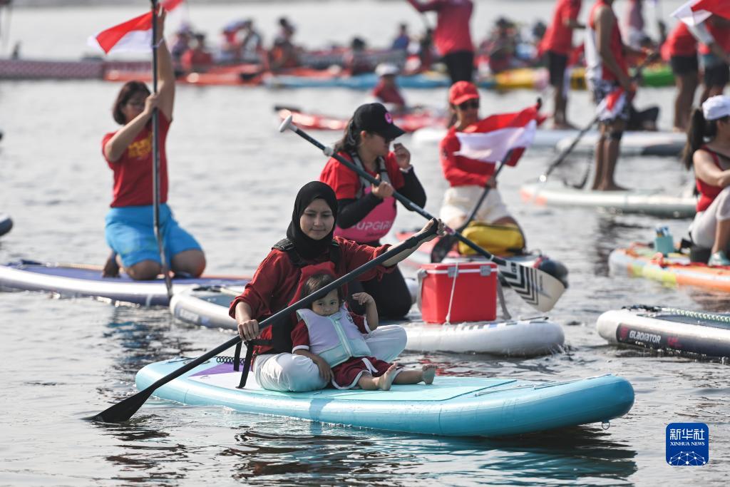 8月17日,在印度尼西亞雅加達安卒海灣,水上運動愛好者參加活動,慶祝印尼獨立日。