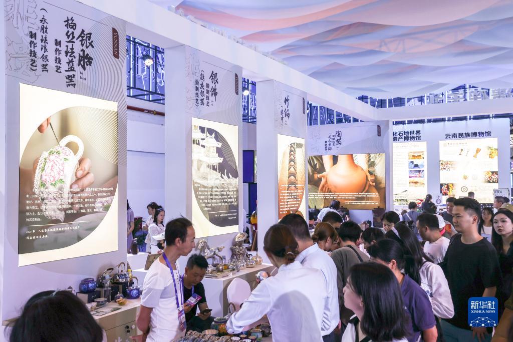 8月17日,參觀者在第七屆中國—南亞博覽會云南非遺伴手禮展區參觀。