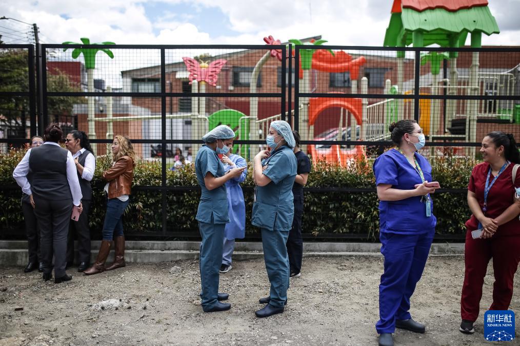 8月17日,在哥倫比亞首都波哥大,人們在地震發生后的街頭避難。