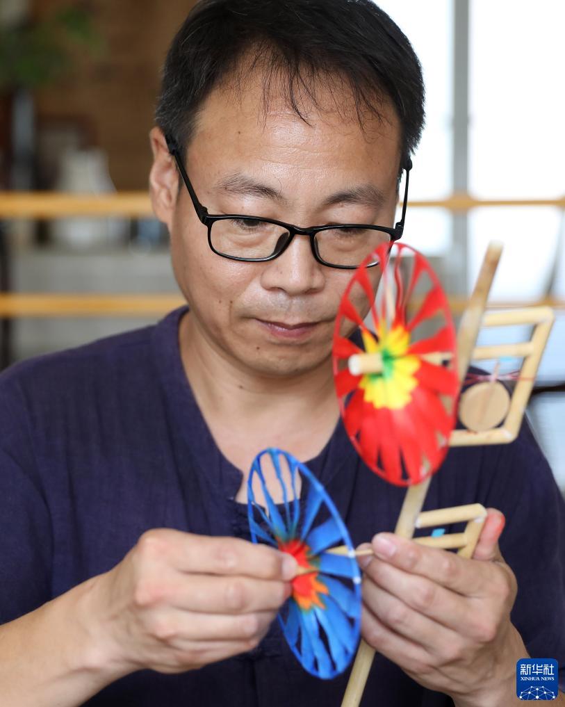 傳統吉祥輪彩紙風車代表了喜慶和吉祥,作為遼寧營口崔氏傳統吉祥輪彩紙風車制作技藝第四代傳承人,今年43歲的崔凱將原來傳統風車制作流程和制作工藝進行創新和改良。