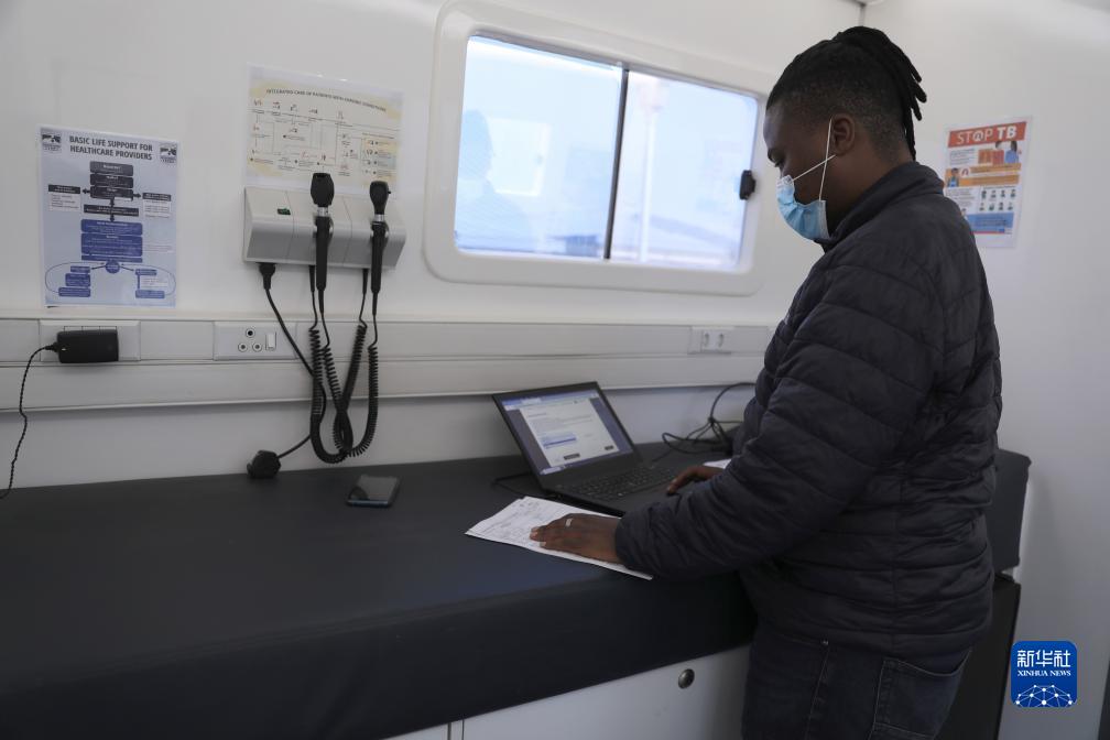 8月10日,在南非德阿鎮一所學校,護士在醫療大巴車上工作。