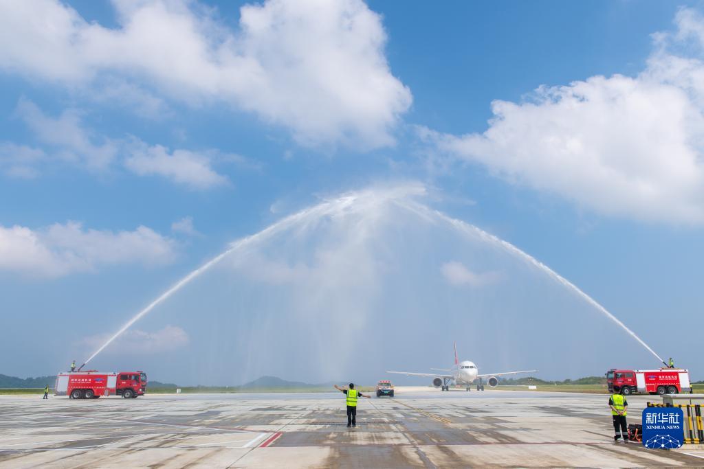 8月18日,湖南湘西邊城機場為首個進港航班舉行“過水門”儀式。