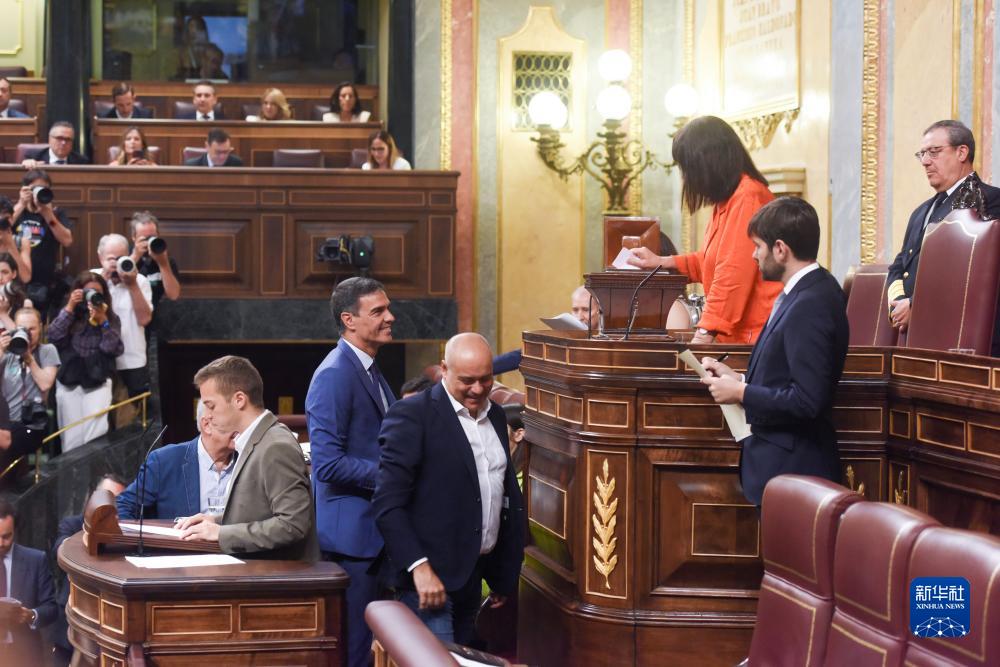 8月17日,西班牙代理首相佩德羅·桑切斯(中)在位于馬德里的議會進行投票。