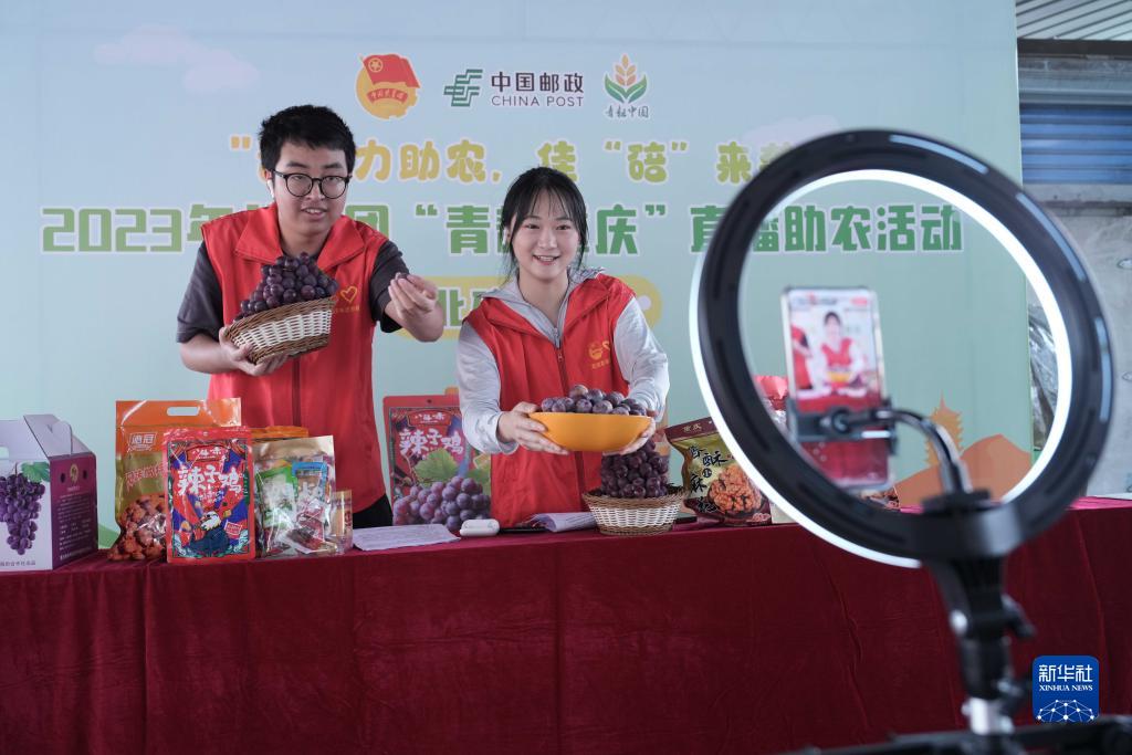 當日,共青團重慶市北碚區委組織參加“返家鄉”“三下鄉”社會實踐活動的大學生走進葡萄園,開展“青耘重慶”直播助農活動,幫助果農拓寬銷售渠道。今年暑期,共青團重慶市委聯合多家單位啟動了“青耘重慶”直播助農活動暨大學生公益助農營銷挑戰賽,組織多個高校的大學生開展為期兩個多月的公益助農銷售活動。連日來,大學生們來到田間地頭,通過直播帶貨、創意視頻、推文宣傳等形式,擴大當地農特產品影響力和知名度。