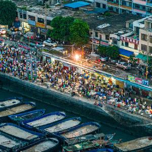 8月18日清晨,客商在北海電建漁港購買海鮮(無人機照片)。