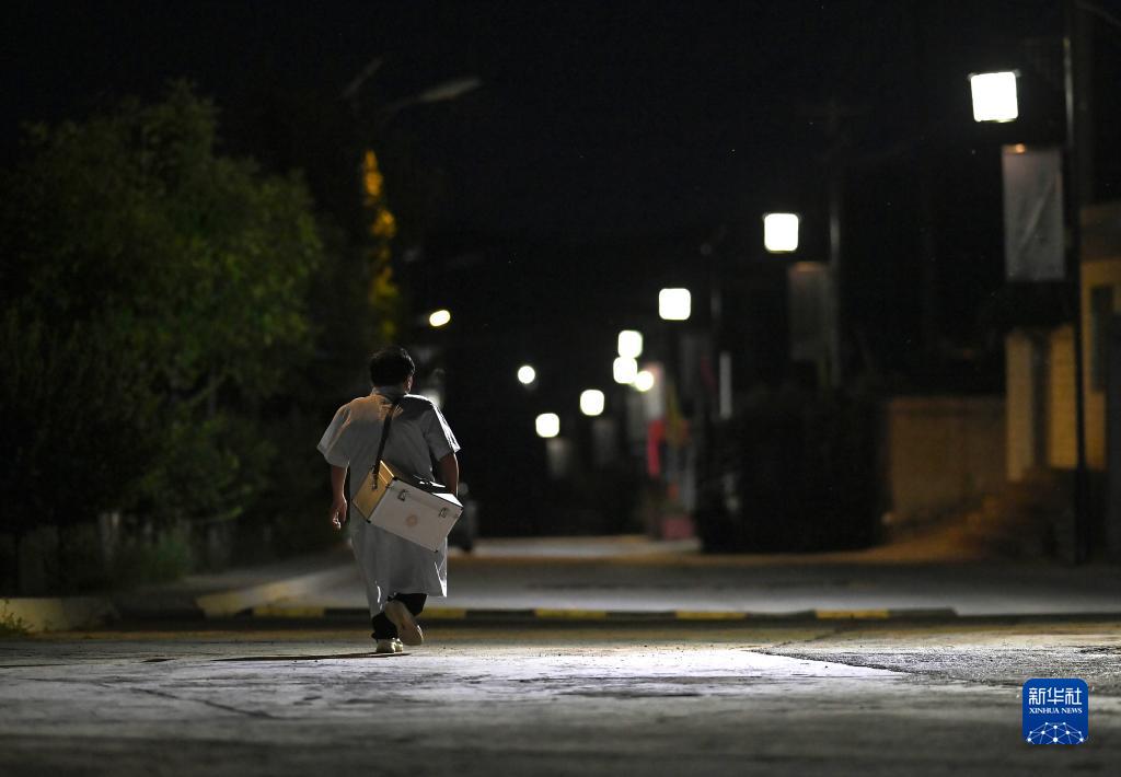 出診結束后,村醫楊興榮走在回家的路上(8月14日攝)。