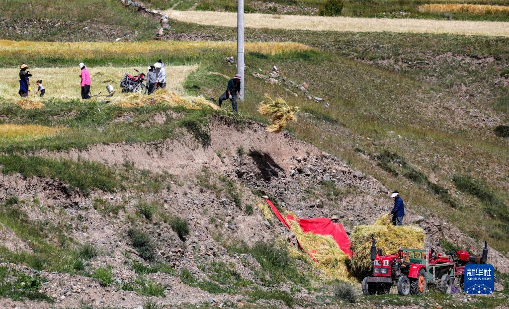 目前,西藏各地進入秋收時節。西藏昌都市邊壩縣的農民抓緊收割青稞和牧草,確保顆粒歸倉。