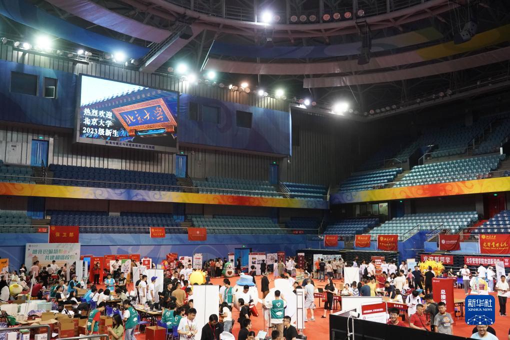 這是8月19日在北京大學邱德拔體育館內拍攝的新生報到現場。