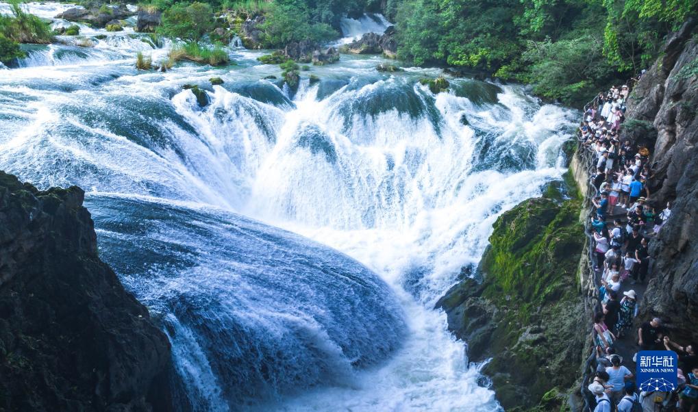 初秋時節,位于貴州省安順市的黃果樹瀑布景區進入一年中的最佳觀賞期。大瀑布奔騰而下、氣勢磅礴,前來觀賞游玩的游客絡繹不絕。