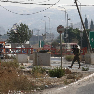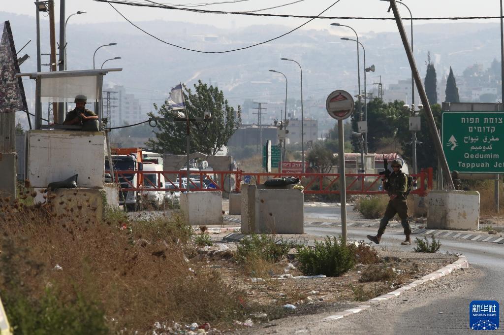 8月19日,在約旦河西岸城市納布盧斯以南的胡瓦拉鎮,以色列士兵在襲擊事件現場附近的一個檢查站執勤。