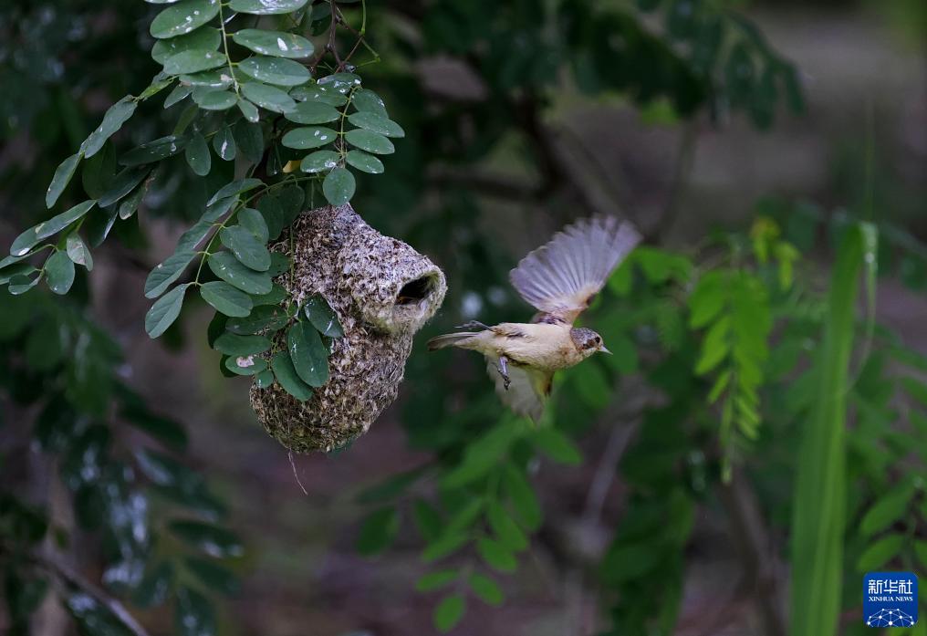 8月19日,一只中華攀雀成鳥飛離巢穴外出捕食。