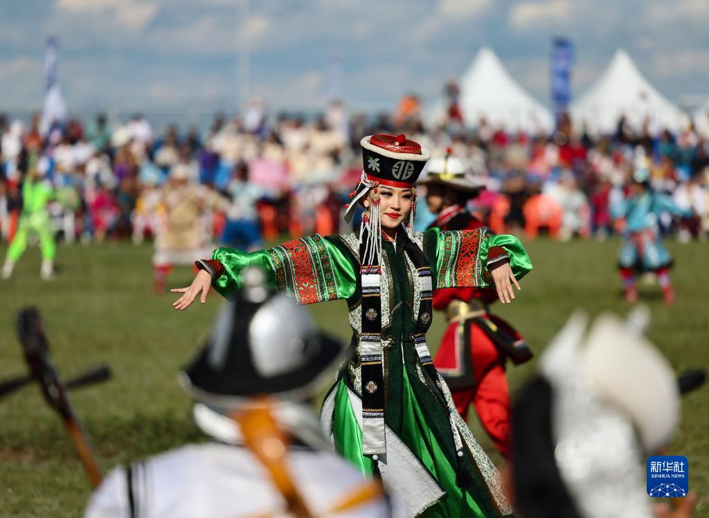 8月18日,在蒙古國泰吉山谷,演員在文化節開幕式上表演文藝節目。