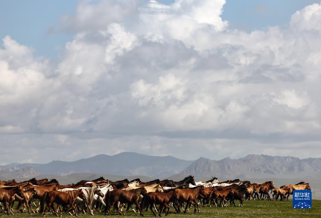 這是8月18日在蒙古國泰吉山谷拍攝的文化節賽馬用的馬匹。