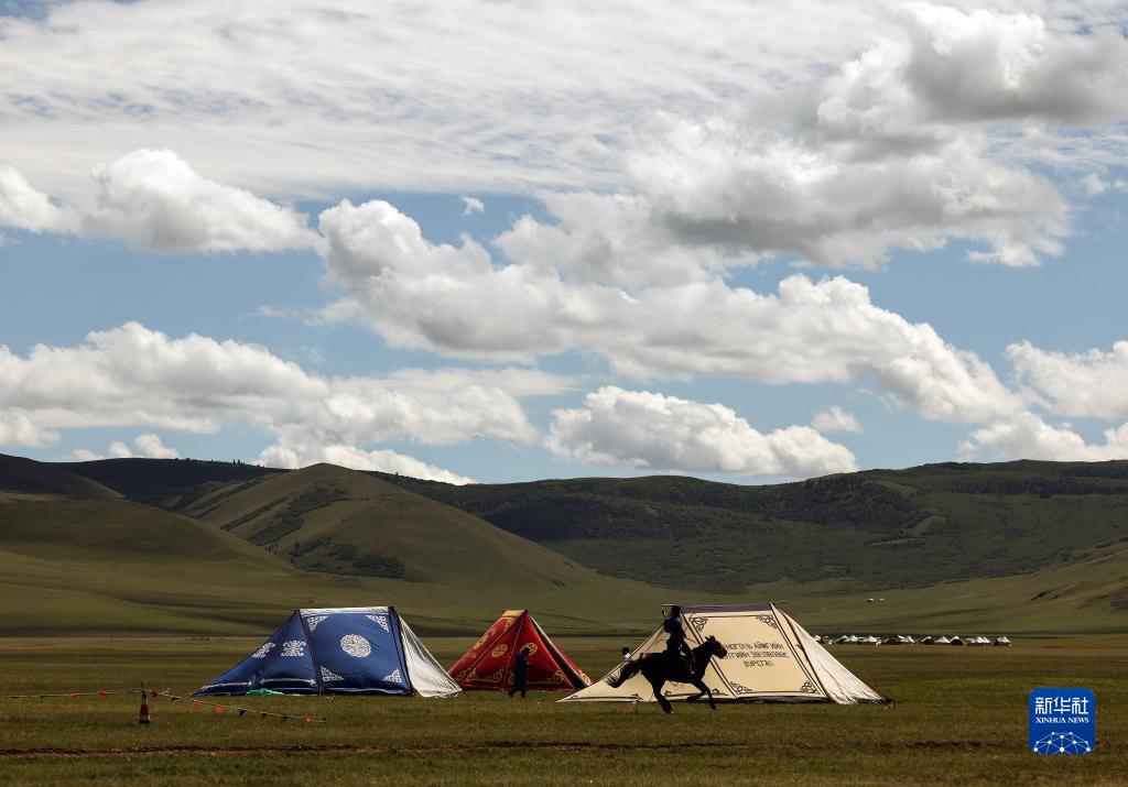 這是8月19日在蒙古國泰吉山谷拍攝的參加文化節的牧民的帳篷。
