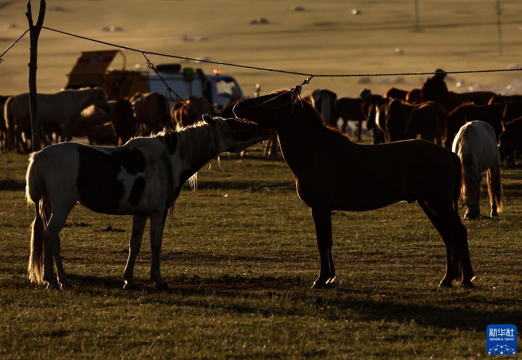 散去了白天的喧囂,距離蒙古國首都烏蘭巴托40多公里的泰吉山谷又恢復了往日的寧靜,夕陽給山谷和牧場披上了金色的盛裝。參加2023年度“游牧民族”世界文化節的人們,有的選擇在此宿營,等待次日繼續參加文化節的各種活動,有的選擇駕車返回烏蘭巴托或附近的牧點。牧人們將放牧的馬匹收攏并帶回家中,不知疲倦的孩子們繼續在夕陽中嬉戲打鬧。