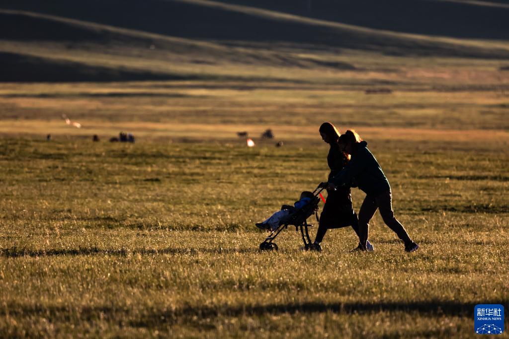 散去了白天的喧囂,距離蒙古國首都烏蘭巴托40多公里的泰吉山谷又恢復了往日的寧靜,夕陽給山谷和牧場披上了金色的盛裝。參加2023年度“游牧民族”世界文化節的人們,有的選擇在此宿營,等待次日繼續參加文化節的各種活動,有的選擇駕車返回烏蘭巴托或附近的牧點。牧人們將放牧的馬匹收攏并帶回家中,不知疲倦的孩子們繼續在夕陽中嬉戲打鬧。